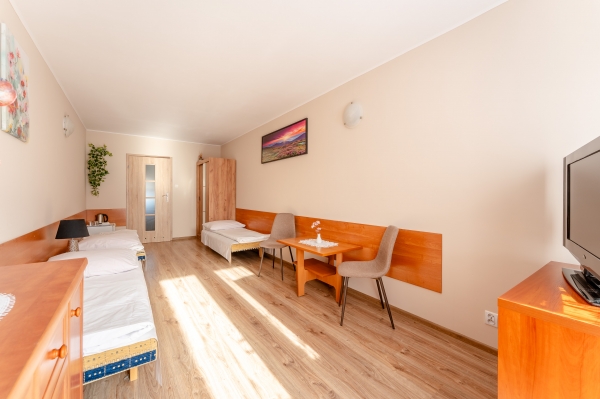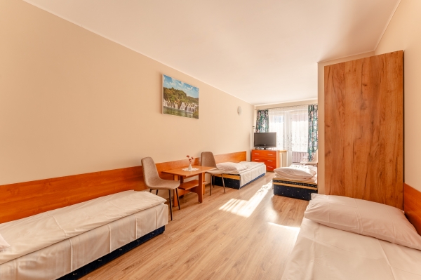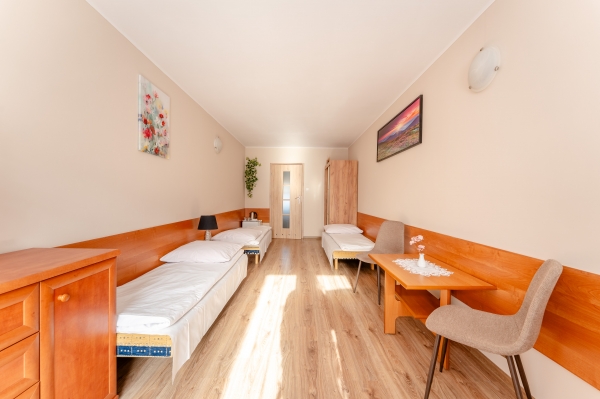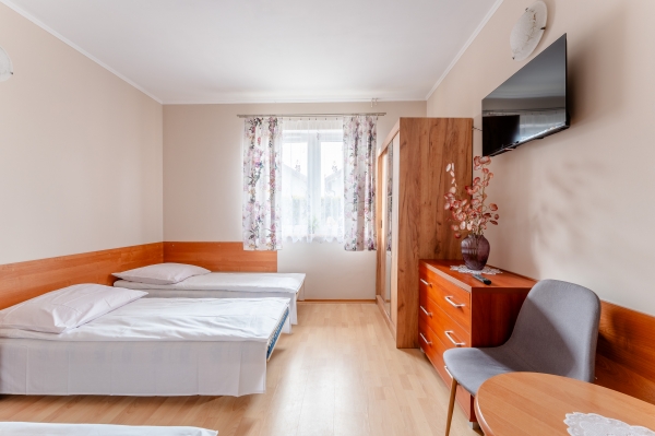 Oferujemy pokoje 2-, 3- i 4-osobowe z własnymi łazienkami.